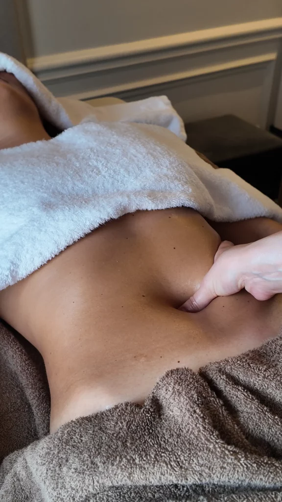Le massage du ventre Chi Nei Tsang utilise des pressions douces mais profondes directement sur l’abdomen. Ces manœuvres permettent de :
